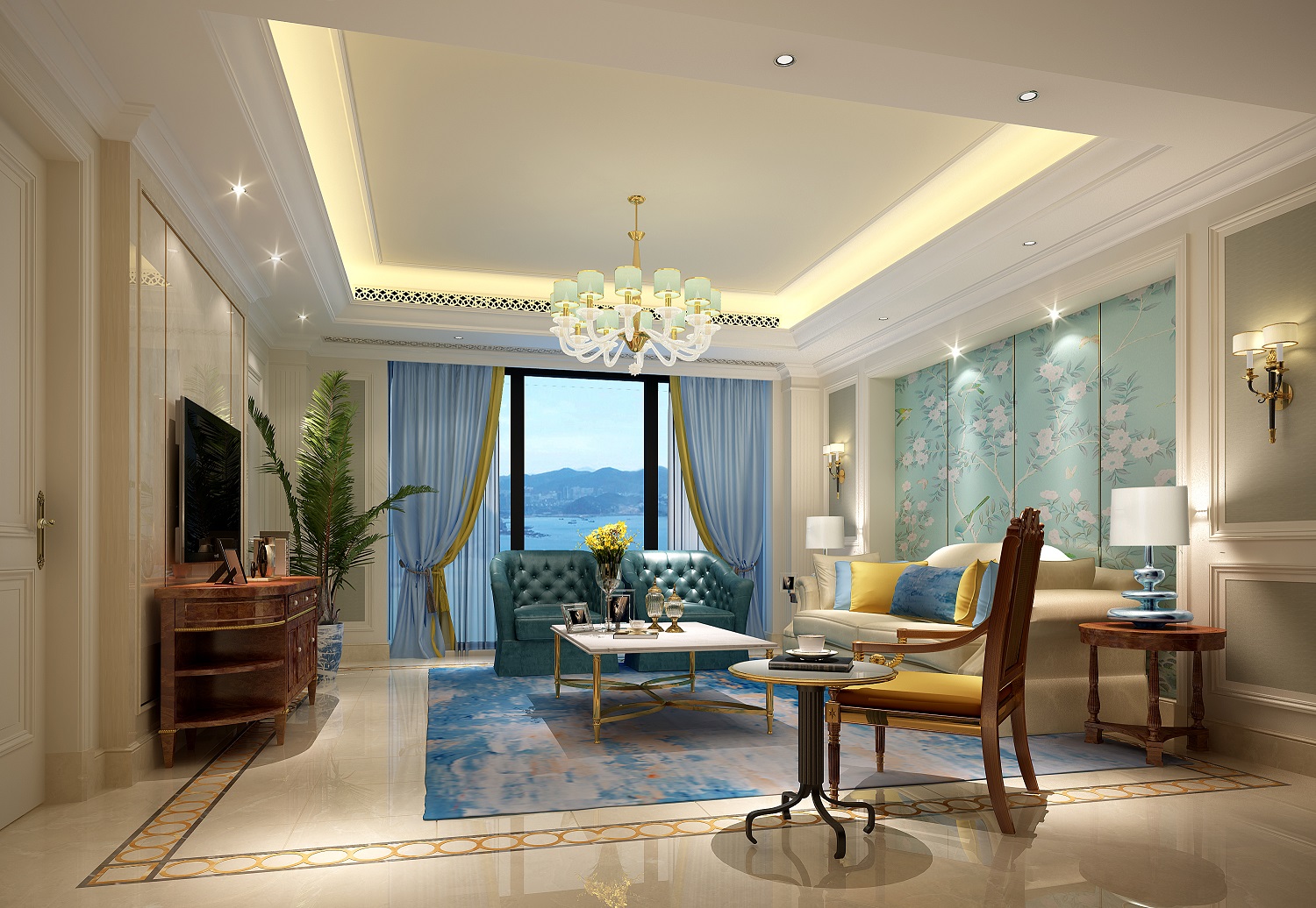 保集外滩家装简约客厅3d效果图制